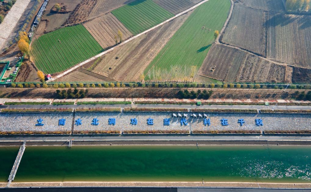 位于京冀交界處的南水北調(diào)中線工程總干渠(2024年11月14日攝,無人機照片)。 新華社記者 陳鐘昊 攝