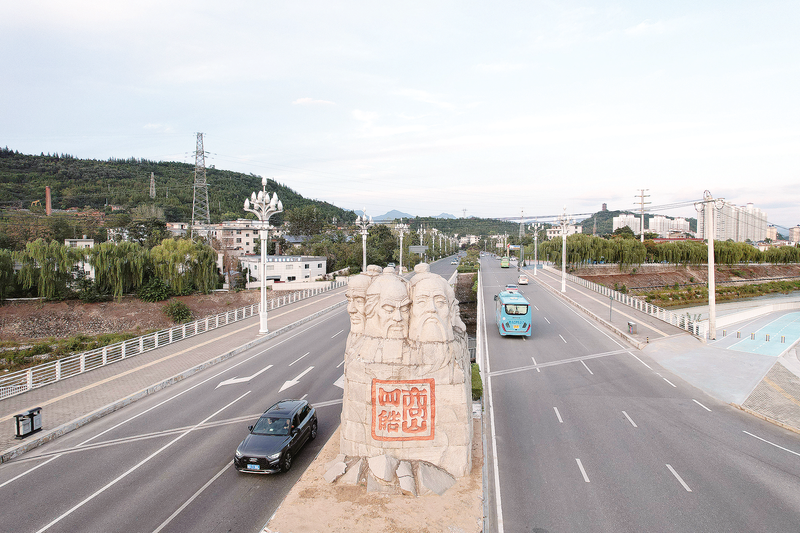 在市中心城區(qū)迎賓大道,古樸莊嚴(yán)的商山四皓雕塑巍然矗立,彰顯商洛深厚的文化底蘊(yùn)。