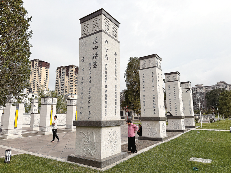 △市中心城區(qū)四皓公園內(nèi),古詩(shī)詞石刻隨處可見。市民或漫步賞景或駐足品讀詩(shī)文,在充滿文化氛圍的環(huán)境中享受休閑時(shí)光。
