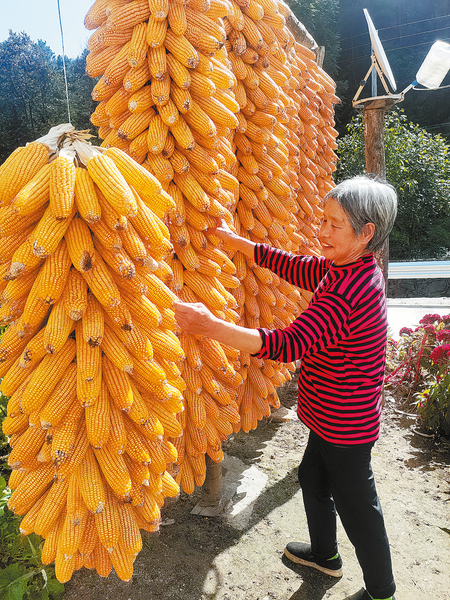 △9月13日,秋陽正好,商州區(qū)楊斜鎮(zhèn)松云社區(qū)的居民紛紛在自家院中晾曬玉米,金黃的玉米裝點庭院,盡顯豐收好光景。