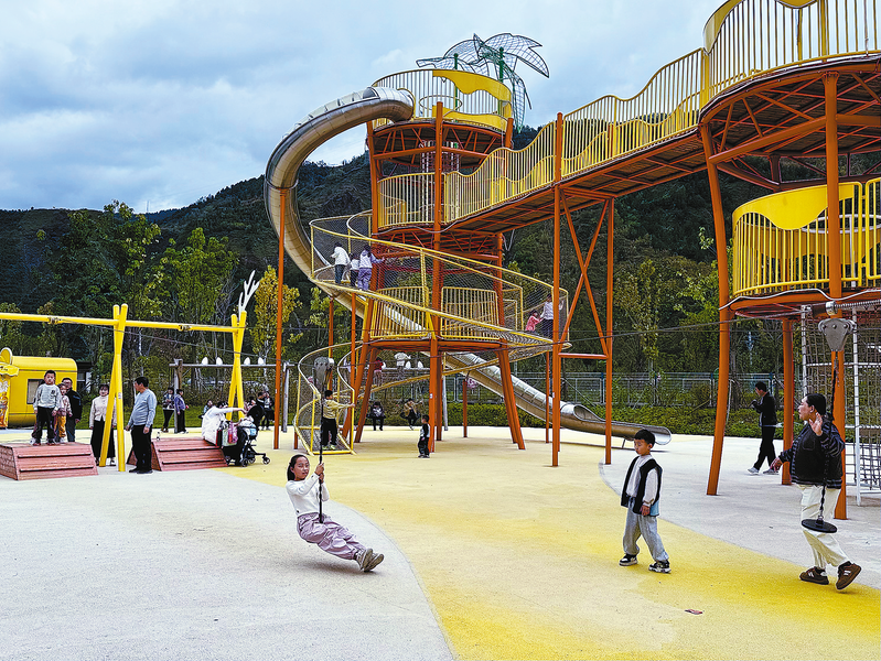 國慶假期后,丹鳳縣棣花鎮(zhèn)葡萄星球游樂場延續(xù)“免門票”福利,作為丹鳳本地特色文旅IP,此項舉措激活本地游市場,成為家庭周末出行的熱門選擇。圖為十月十九日,許多家長帶著孩子在游樂場里玩耍。(本報記者 謝非 攝)